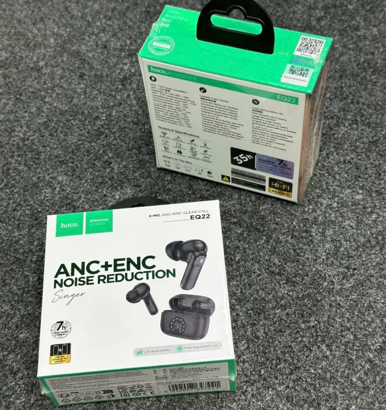 Hoco EQ22 হলো একটি আধুনিক ও শক্তিশালী TWS ইয়ারবাড, যা মিউজিক প্রেমী এবং কল ইউজার—উভয়ের জন্যই উপযুক্ত। দীর্ঘ ব্যাটারি ব্যাকআপ, হাই-ফাই অডিও কোয়ালিটি ও নয়েজ ক্যান্সেলেশন ফিচার একে করেছে অনন্য।